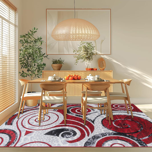 Dark Red Swirl Medium-Pile Area Rug
