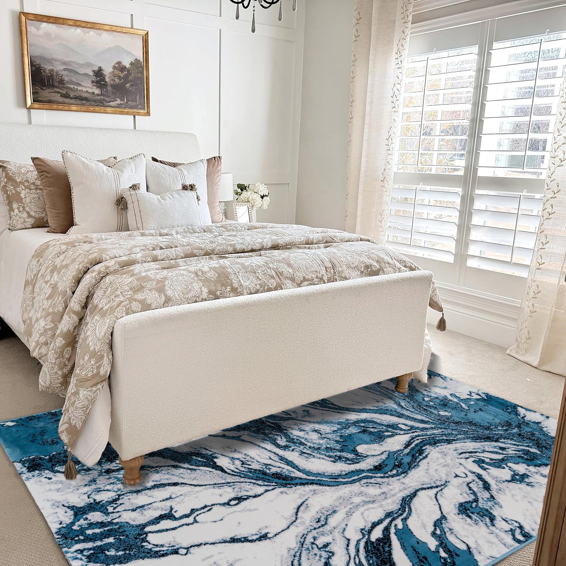 Experience the luxurious elegance of the Cozirita Area Rug in "Blue Stormy." This premium medium-pile, rectangle area rug combines modern sophistication with unmatched practicality, making it a stunning addition to your dining room, living room, bedroom, or office. Expertly crafted with durable Turkish artistry and a sturdy jute backing, it ensures lasting quality and stability. The stain-resistant surface allows for effortless maintenance, while its sleek, modern design adds a touch of refined luxury to any space. Transform your interiors with this modern, premium rug—upgrade your décor today!