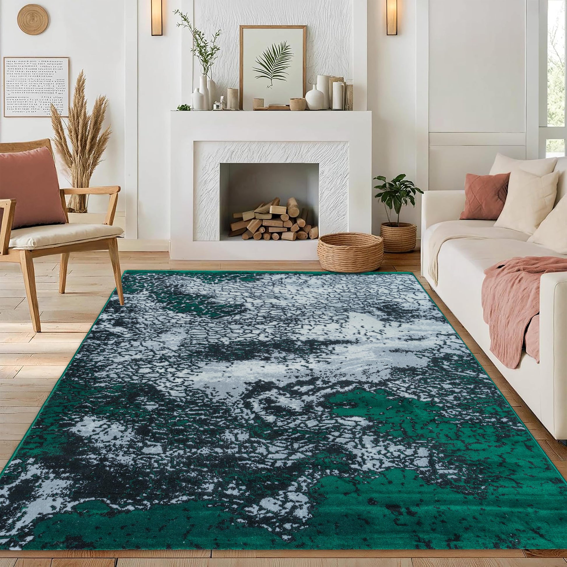 Cozirita Frozen Green - Medium Pile Area Rug for Dining Room - Rugs for Living Room, Bedroom, Office - Premium Turkish Carpet with Jute Backing
